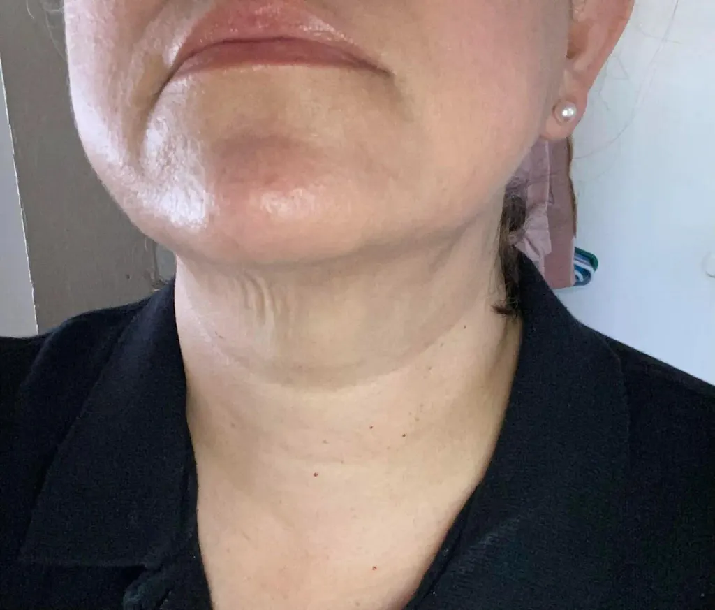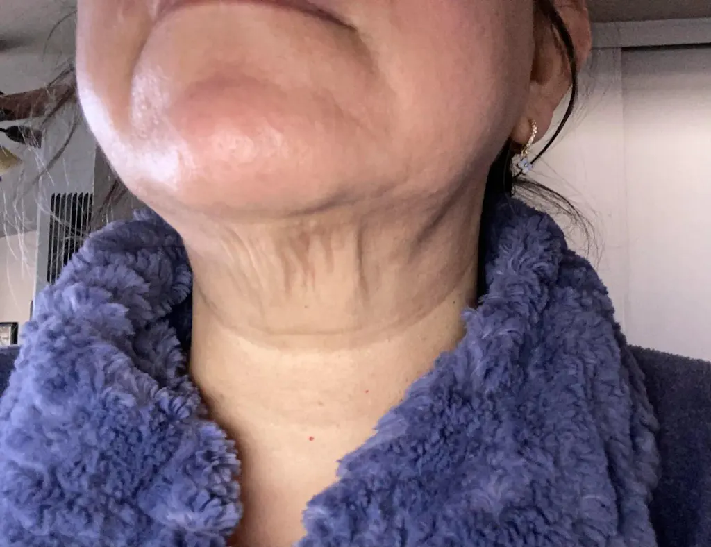 Estaba incrédula pero si funciona para la papada, también tenía líneas en el pecho por dormir de lado. Recomendada, estoy feliz